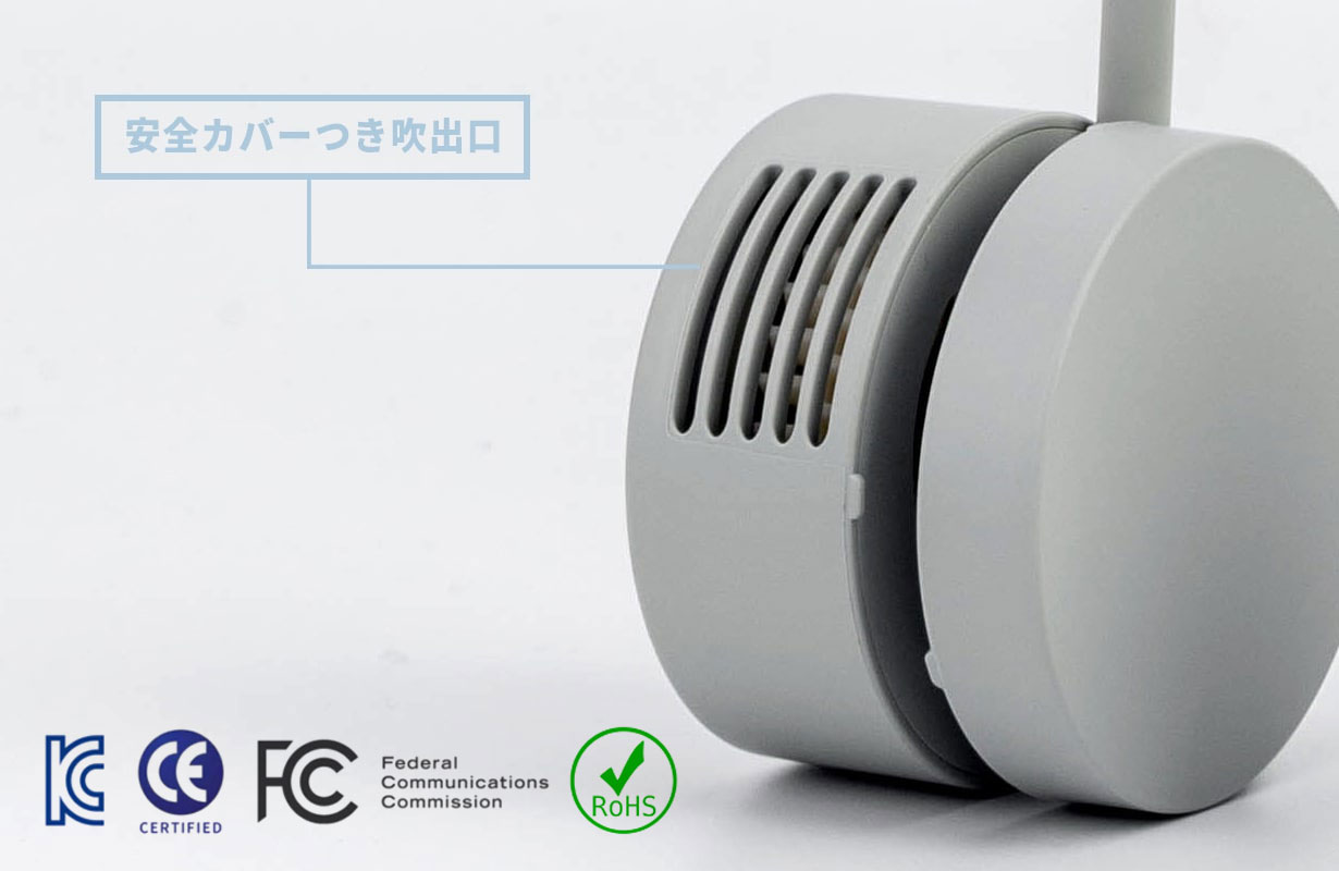 自由自在に曲がるシリコン製のアームは、360度お好みの角度で調節可能です。左右の角度調整も簡単。風向きを自分用にカスタムして調整可能です。